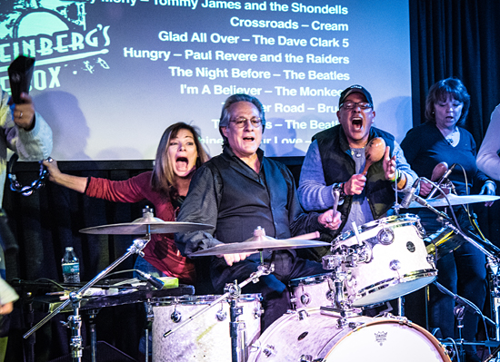 Both. One of the fun and challenging aspects of the Jukebox is when someone asks for something not on the list — we'll give it a shot if someone in the band knows it. That happened with "Good Time Bad Times." John Merjave, our guitarist from the Weeklings, knew it — and I'm no Bonham, but I've heard the song a thousand times, so we gave it a shot. Came out great, and the crowd loved that we tried it.