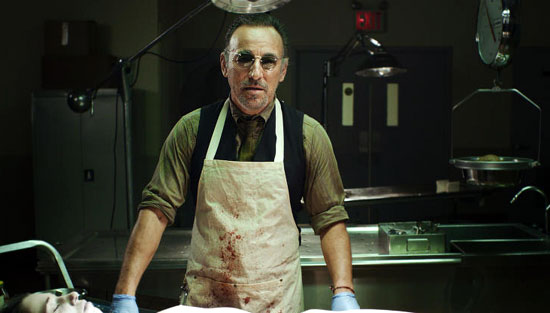 Just in time for Halloween, some official shots of Springsteen in character as mortician Giuseppe at the end of Lilyhammer season three. Visit Dagbladet.no for more. The new season launches November 21.