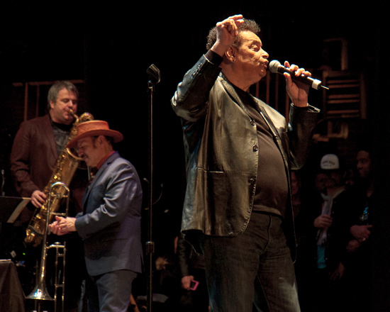 But they weren't done yet, as familiar strains of Jackie Wilson's "(Your Love Has Lifted Me) Higher and Higher" began to echo through the dusty rafters of the Paramount. (What good is a big band with an extra big horn section if you're not going to play some Jackie Wilson?) Bonds, ably supported as usual by his wife and daughter on backing vocals, enthusiastically traded verses with La Bamba as other performers meandered onstage to help close out the night. Indeed, the end was near, but not before an audience sing-along/band introduction on "Havin' a Party."