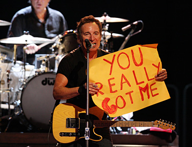 But really, a lot of the fun was trying to watch through the eyes of those unfamiliar with the drill, as this was Bruce and the band's biggest world stage by far. And we've gotta think those uninitiated were left wanting more, as the old showbiz saying suggests, just as we were -- a good thing, except for the impact it may be having on ticket sales this morning. (Not to mention BTX traffic -- we're working on that one.)