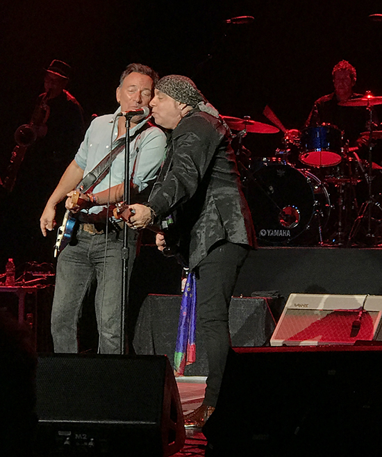 Friends huddled in circles, others stood alone, smiles creasing faces that ain't that young anymore. Glistening eyes took one last look around the quickly dissipating closing-night crowd, paths crossed on tour about to bring us home to our everyday lives. Lives that, unlike a Bruce show, offer no guarantees. Lives that for some had been on hold for five weeks after this tour began on a January night in Perth, Australia when Bruce declared the band's allegiance with a "new American resistance." All that was history now, as were 14 nights of shouting, fist-pumping, ass-shaking, jumping, sign-waving, hand-clapping salvation. With a raw longing for this magical circus to continue we bade tearful goodbyes and told each other we'd do it again someday. While that may or may not be true, we also swore forever friends. And that, my friends, will be true… until the end.